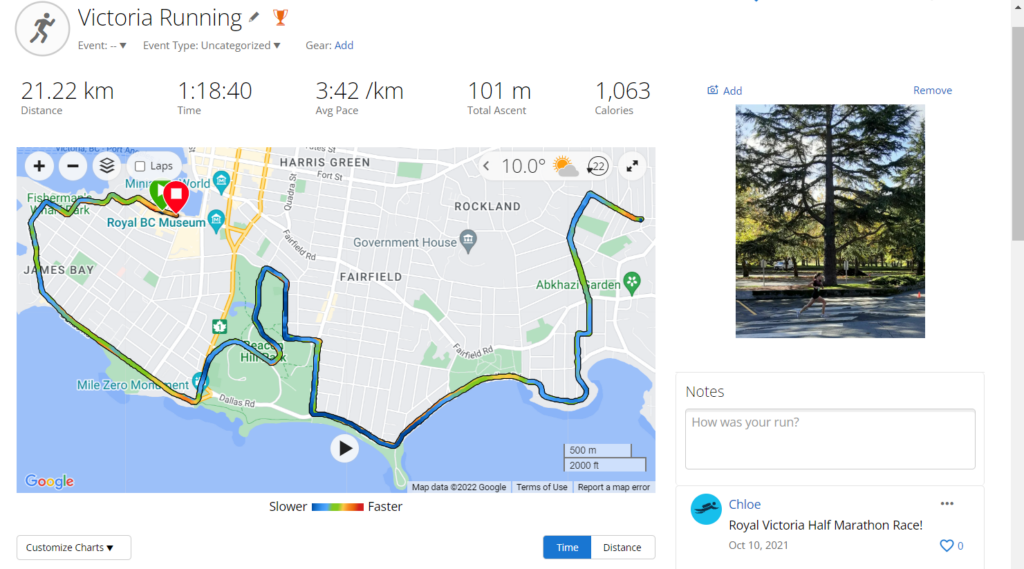 Overall, I’m really happy with the race I ran and the training I did to make me feel so prepared and able to race to my fitness level. I’m so excited for my next opportunity to race a half-marathon, and for the training that it’ll take to get into PB shape! I hope to run the half-marathon in Victoria again. It is a great event and I highly recommend checking their website https://www.runvictoriamarathon.com/ if you are interested in learning more about/participating in this great community event!