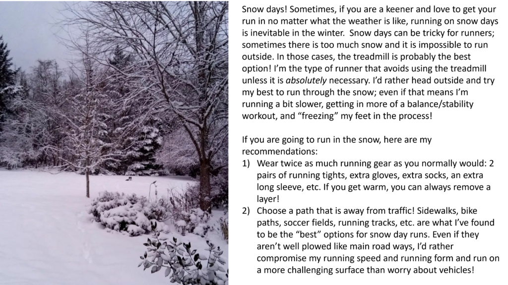 I hope this blog of winter running recommendations was helpful! Running in wintery conditions isn’t always ideal, but I think the extra planning/preparation time required to ensure you can enjoy your runs is so worth it! Also, even if the weather isn’t nice, I always feel better after a run; I will do what I can to ensure I am able to run year-round to improve my mood and well-being!